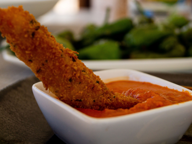 Tiras de boniato frito con mayonesa de alcaparras